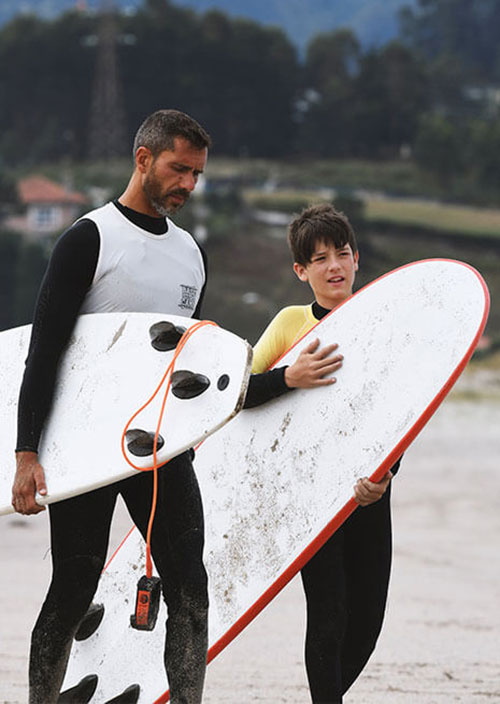 Todos los monitores de la escuela de surf en Bastiagueiro somos profesionales en la enseñanza del surf en los que puedes confiar. Conocemos perfectamente las necesidades de nuestros alumnos porque también las hemos vivido y siempre vamos a ofrecer los mejores consejos. Tanto si vienes en familia, en pareja o solo, en nuestra escuela estarás cómodo aprendiendo sobre surf.